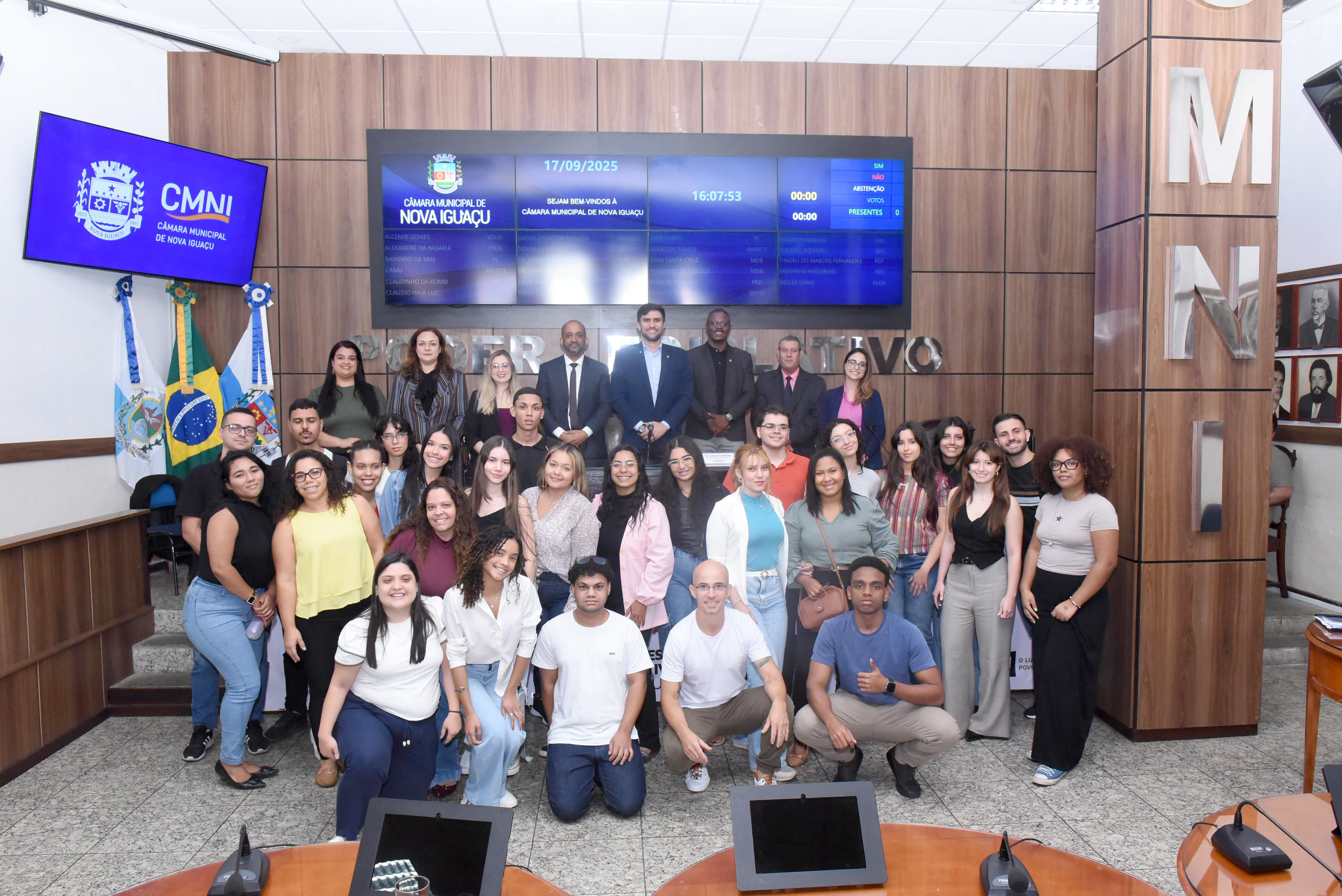 Os estudantes do 4º período de Direito da Universidade Unigranrio - Campus Nova Iguaçu - com faixa etária entre 19 a 25 anos, participaram da retomada do projeto que tem se mostrado como uma ferramenta fundamental para a formação cidadã da juventude. A iniciativa, leva alunos de diferentes instituições de ensino a conhecer de perto o funcionamento do parlamento, estimulando o interesse pela política e pelo exercício da democracia.