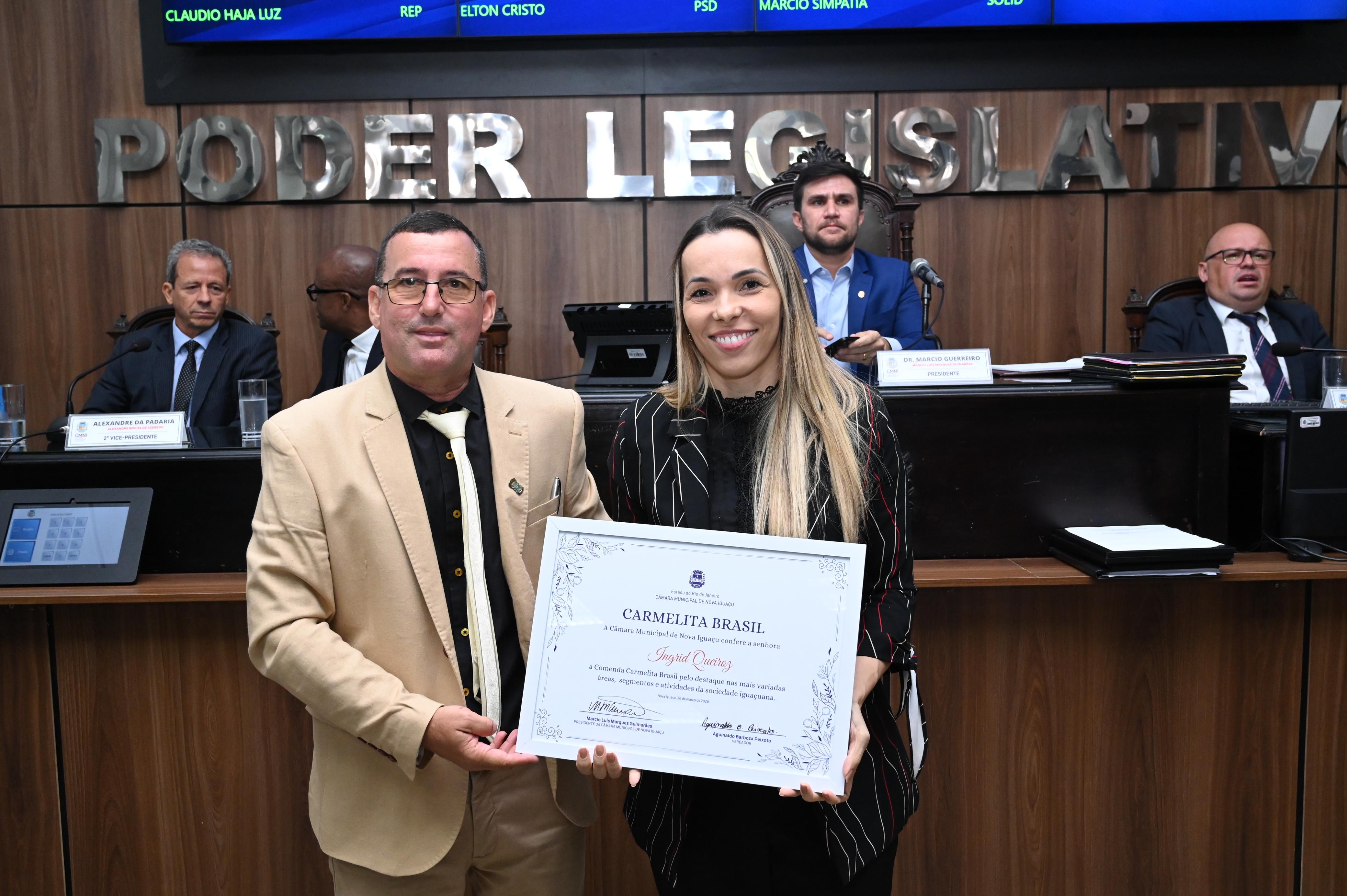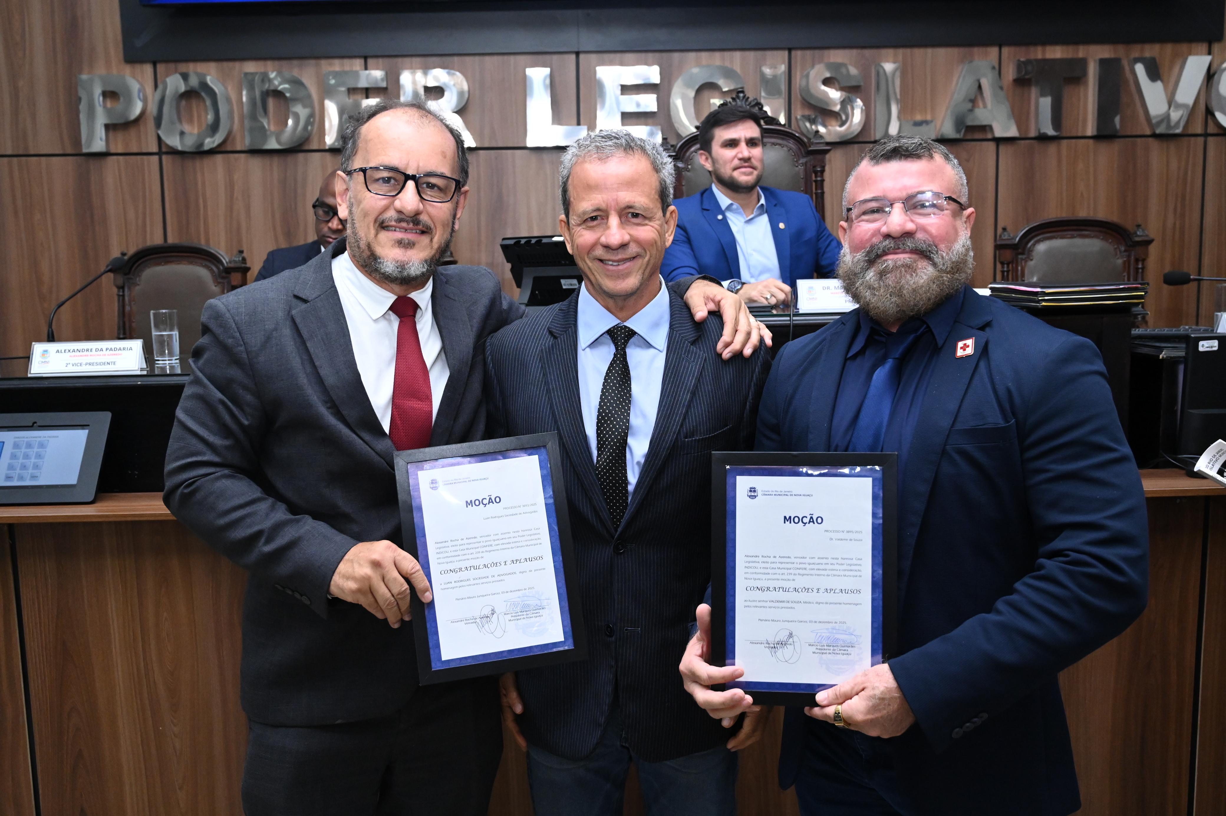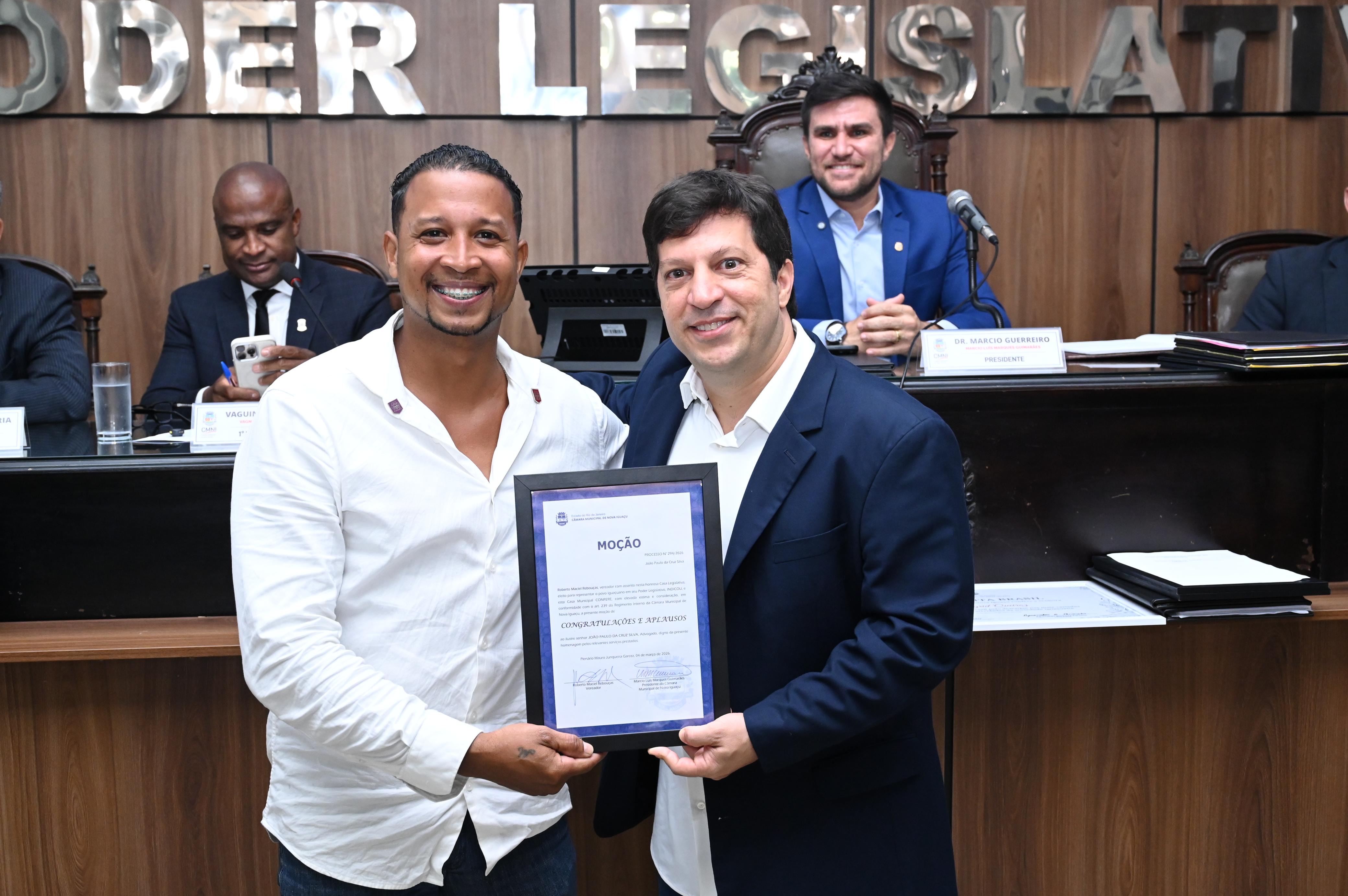 Ainda durante os trabalhos, os parlamentares prestaram homenagem ao servidor Sidney Menezes, com a votação da concessão da comenda Medalha de Mérito Comendador Soares. A honraria reconhece sua dedicação e relevantes serviços prestados ao município, sendo destacado por diversos vereadores como um exemplo de comprometimento e excelência no serviço público. Nas fotos desta matéria você pode conferir todas as personalidades que foram celebradas durante a sessão.