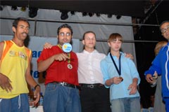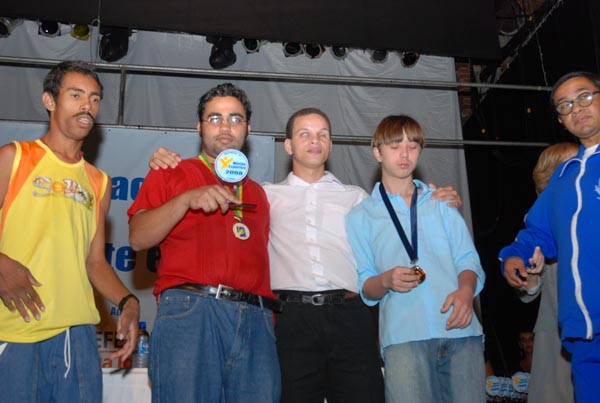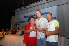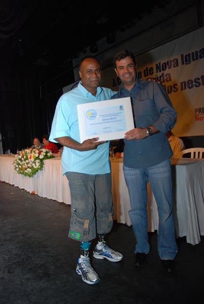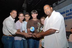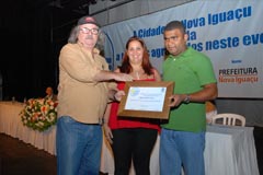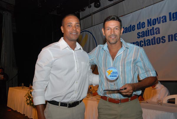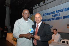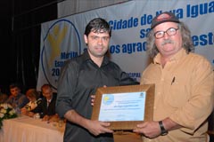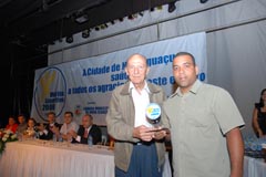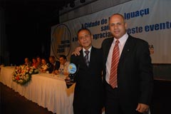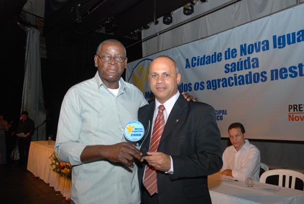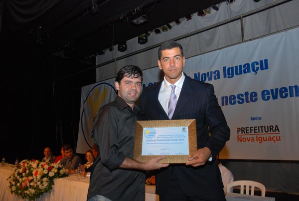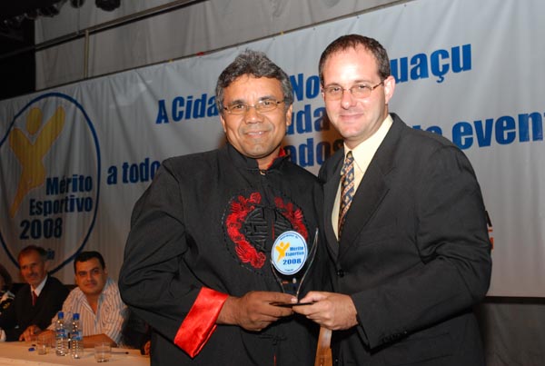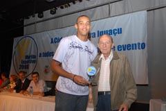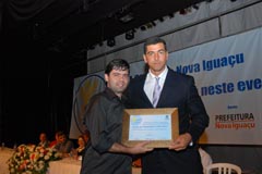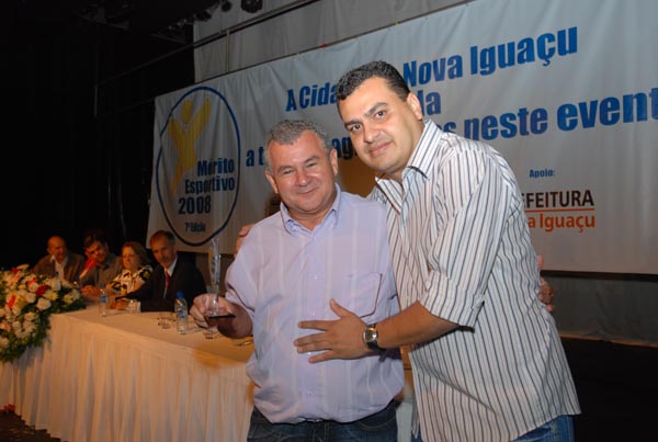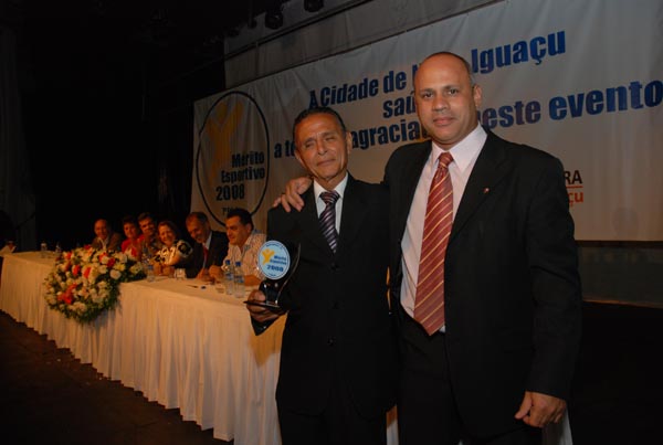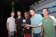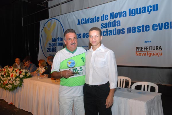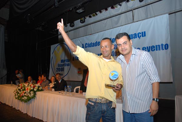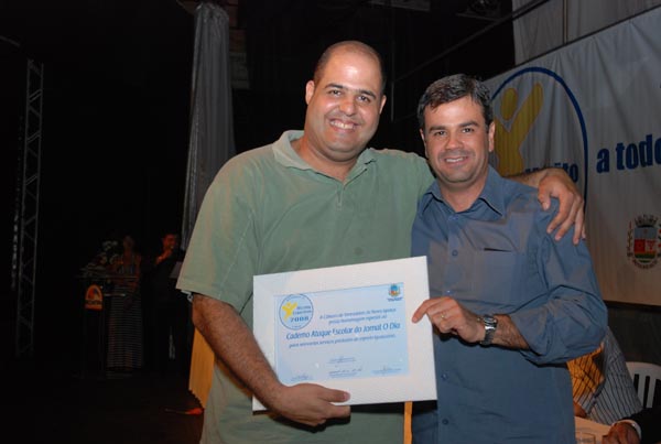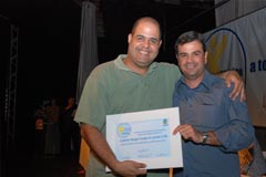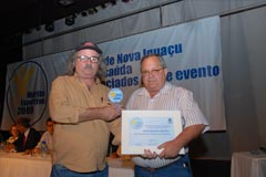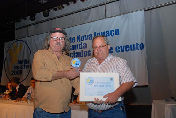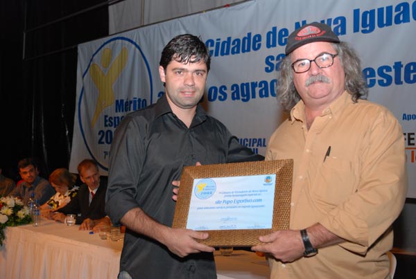 Jota Carvalho (de boné), fundador do site Papo Esportivo recebe diploma de Carlos Melilo, da comissão organizadora |