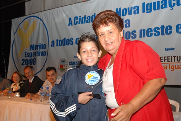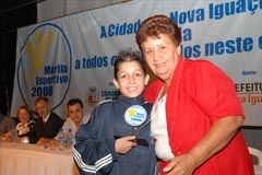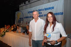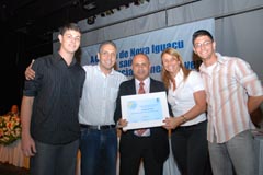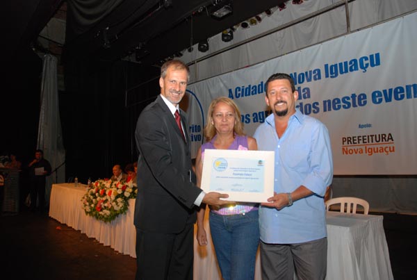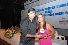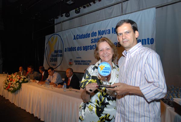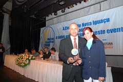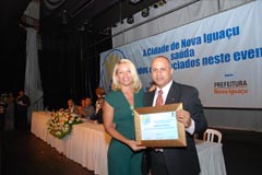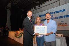 Laerte Miranda, pai do premiado Luir Gagno, e vereadora Marli |
