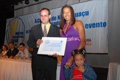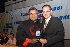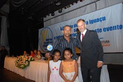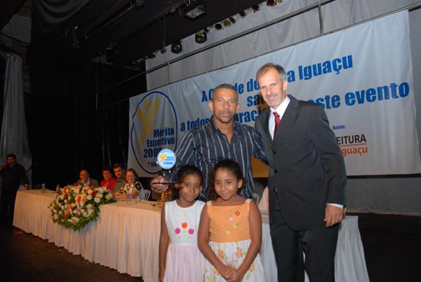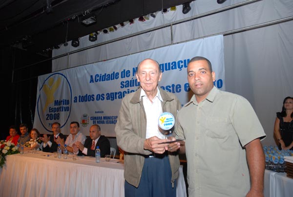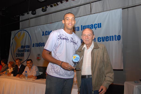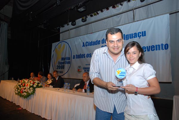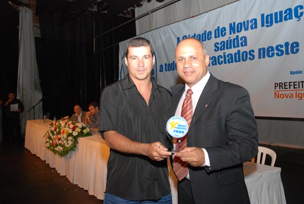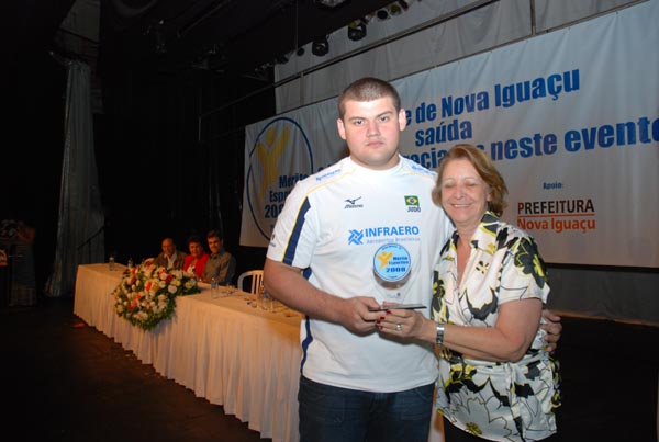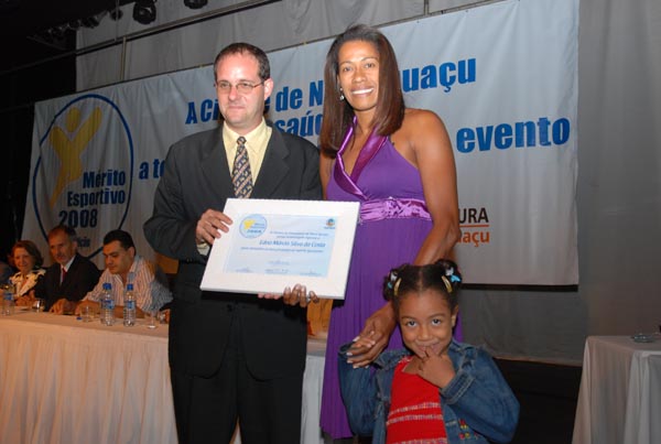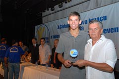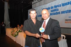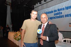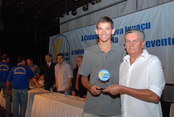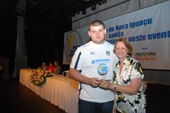 Rodrigo Cruz recebe troféu em nome do nadador Artur Finizola |