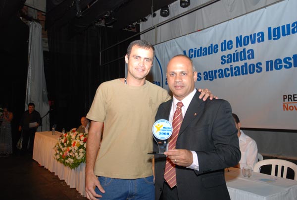 Comemoração em família: Jota Carvalho (esq) homenageia o irmão Juarez Cabral, o melhor da imprensa desportiva |