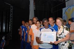 Equipe de Futsal da Vila Olímpica e a vereadora Marli |